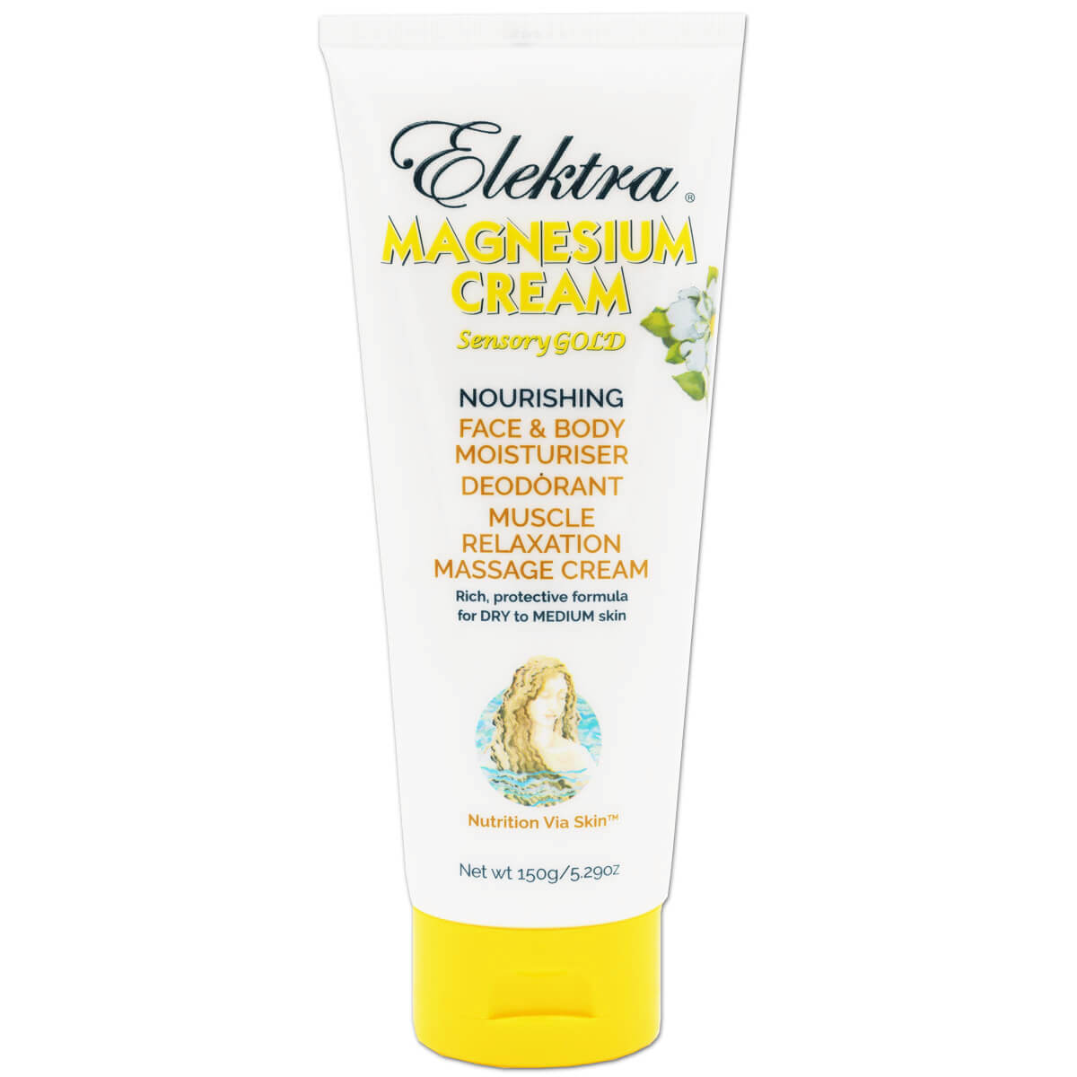 Sensory Gold Magnesium Cream, for medium and dry skin, has a luxurious buttery texture offers beautiful skin support, with a floral aroma of magnolia champaca flower, sandalwood, elemi and petitgrain. Rich plant oils and butters, infused with magnesium ions, nurture skin with nutrition, hydration and protection for a glowing complexion and anti-ageing effect. It is gentle enough for use on children, pregnant women and the elderly. Sensory Gold Magnesium Cream works superbly as an hydrating moisturizer and protective skin care. If you want to smooth out lumpy bumpy skin, this cream provides the nurturing and nutritional support needed for skin recovery, a healthy glow and more youthful complexion.